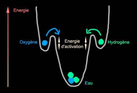 que les produits de départ : la formation d'eau à partir d'hydrogène et