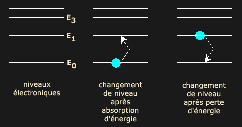 électrons absorbent ou restituent l'énergie sous forme de photons.