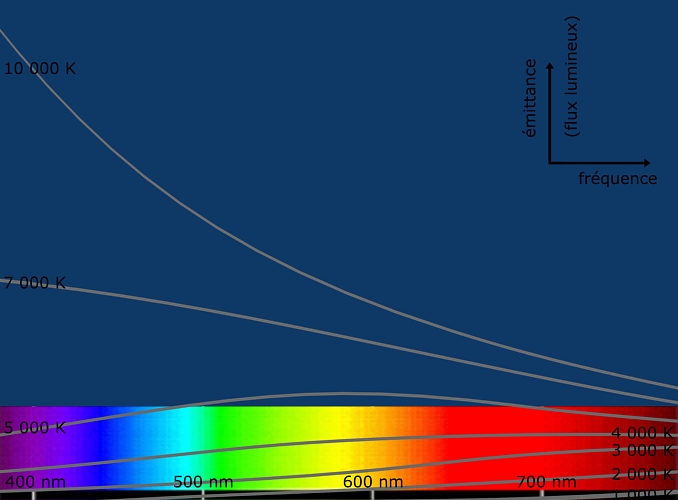 Le blanc (noté W) est une lumière théorique possédant un "spectre d'égale